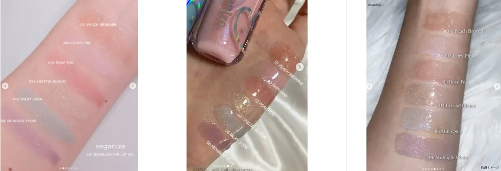 唇発色 : お似合いの盛れた画像2,3色を唇に着用して撮影