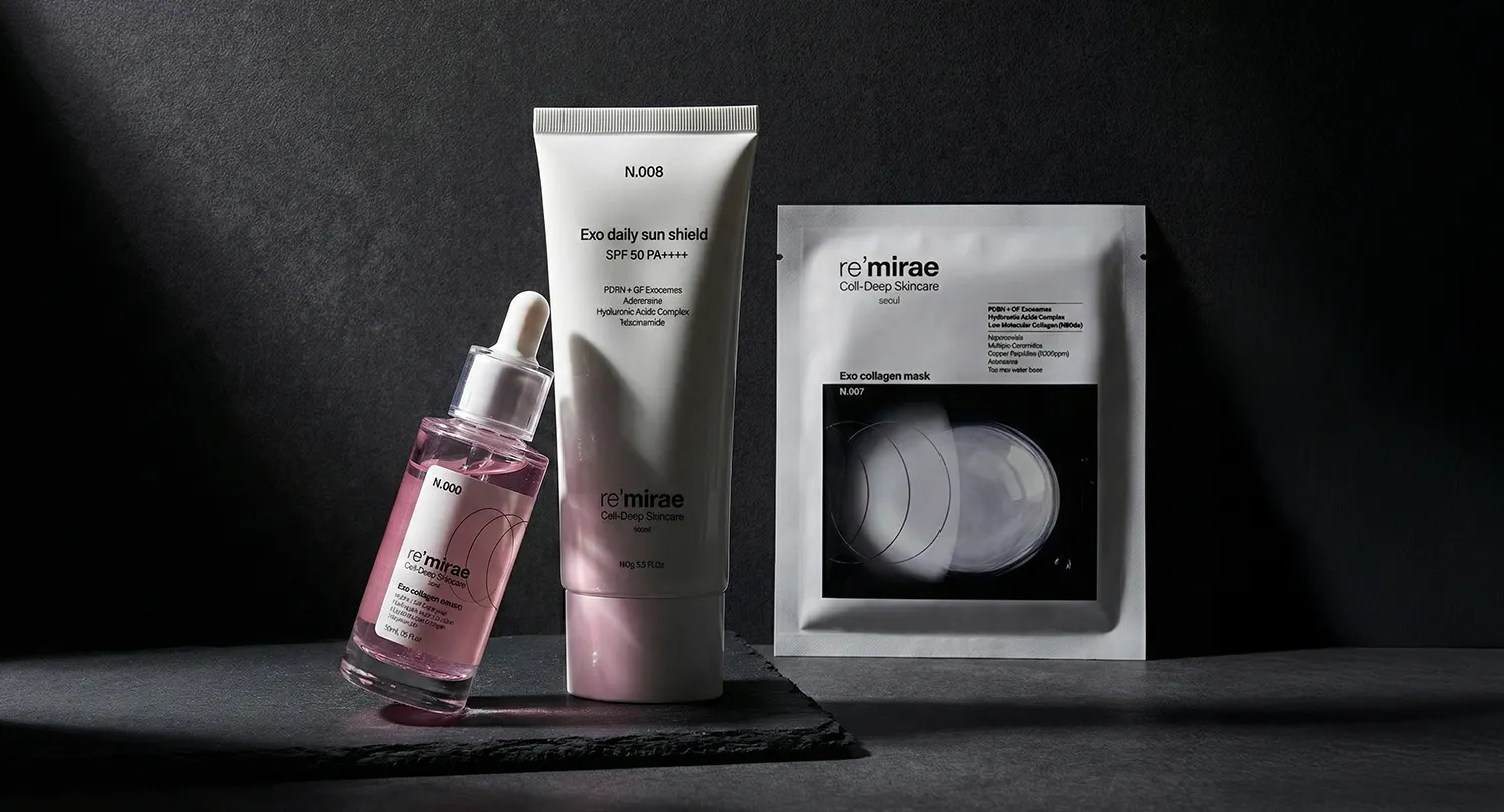 レミレ(re’mirae)は、ゆらぎやすい肌のために生まれた、IT-Exosome(免疫寛容型エクソソーム) 発想のリカバリー系Kビューティースキンケアブランドです。
